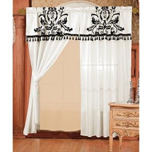 2 Panel Black and White Floral Window Curtain / Drape Set with Valance-treatment Draperies